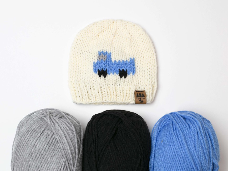 Our perfect medium weight Little Blue Truck hat knitting pattern is perfect for making handmade gifts for your loved ones who love the popular children's book Little Blue Truck.