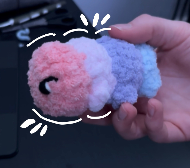 This is a beginner friendly pattern but a basic understanding of common stitches is needed before starting including slip stitches, single crochets, half double crochets and double crochets. To create a caterpillar of a similar size to mine I use size 6, super chunky Bernat blanket yarn with a 5.5mm hook which usually takes about an hour to make.