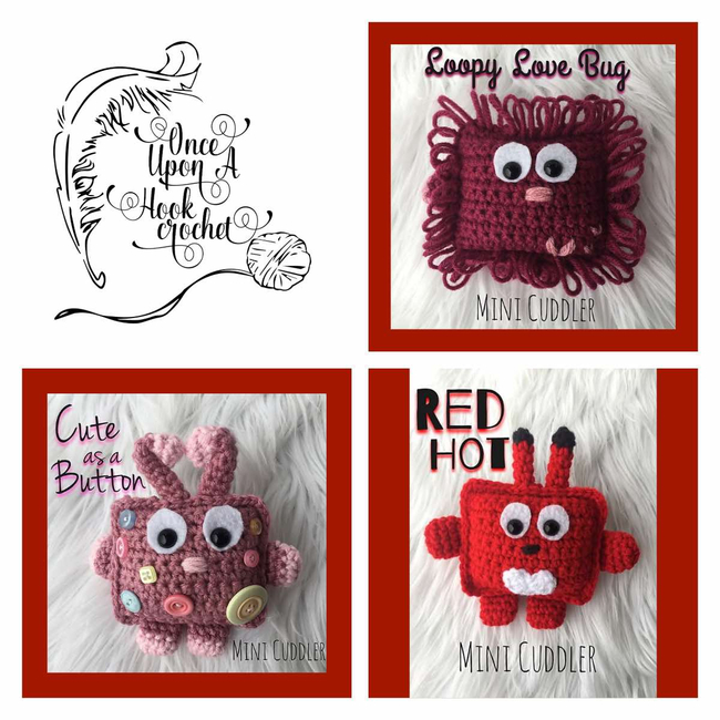 This is a pattern to create all three of the Love Bug Valentines Cuddlers Trio (Mini Cuddlers)