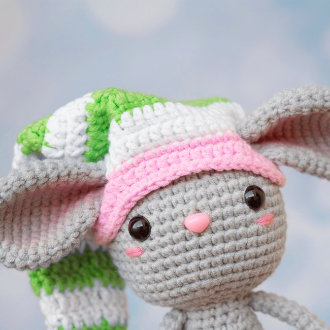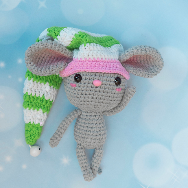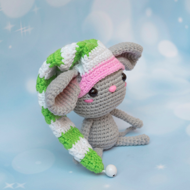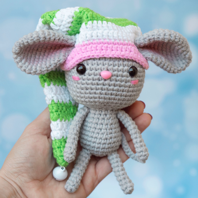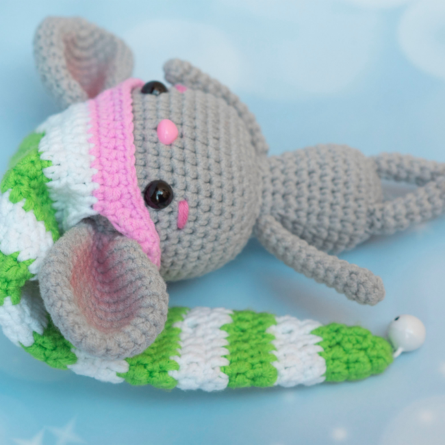 · 10 mm black safety eyes · 10 mm pink safety nose · White bell