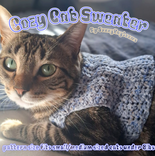Keep your feline friend warm and adorable with the Cozy Cat Sweater, a handmade layer of love for your small to medium-sized cats (under 8 pounds)! This comfy sweater is designed to provide just the right amount of stretch and snuggle for your kitty's comfort.