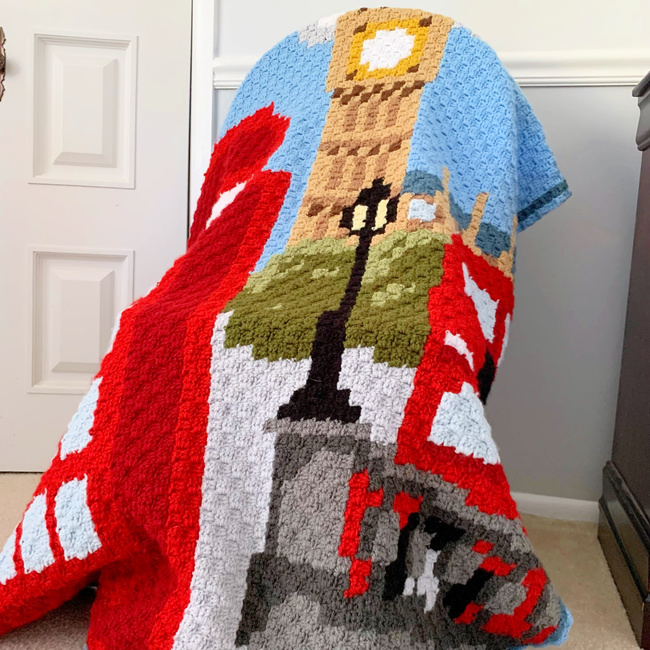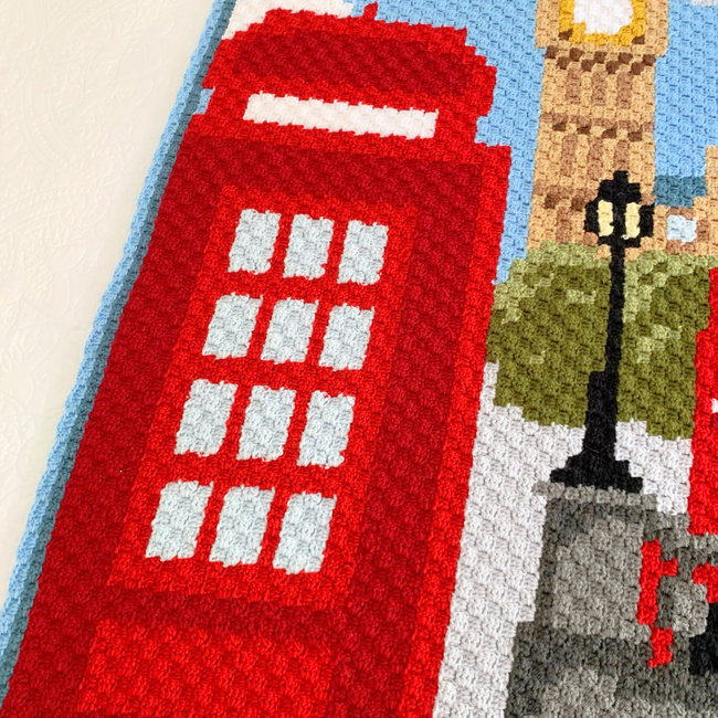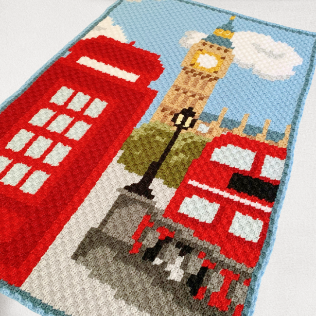 London calling with this C2C crochet pattern! This graphgan depicts London's iconic red phone booth, Parliament Square and Big Ben, as well as a famous double decker red bus. This graphgan would be a fun way to travel the world via your crochet hooks or would make a treasured gift for the traveler in your life.