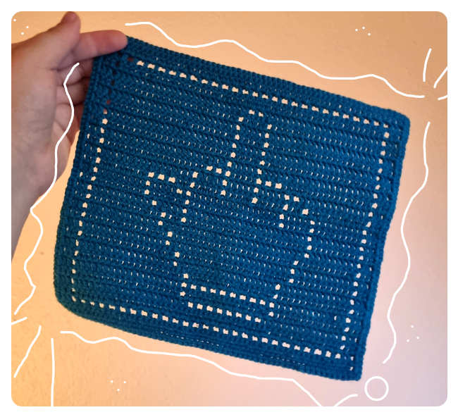 This pattern is made easy to make by having 3 different ways to help you through it. It has a simple chart with colours of where the holes are supposed to be, there is a chart with stitch descriptions, so you can visually can see where the stitches are supposed to be, and there is a written description you can follow if you are in need of any further explaination.