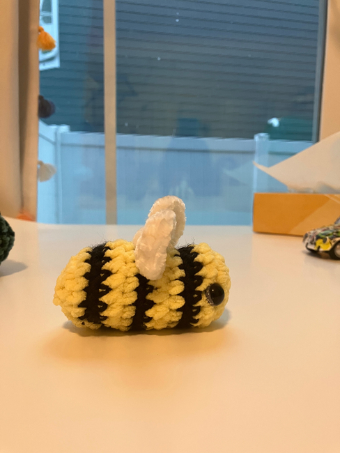 This is a mini bee pattern. this can be a keychain, it is perfect for market prep, or just make a basket full of them for fun! these guys work up pretty quickly, too! hope you enjoy the pattern!