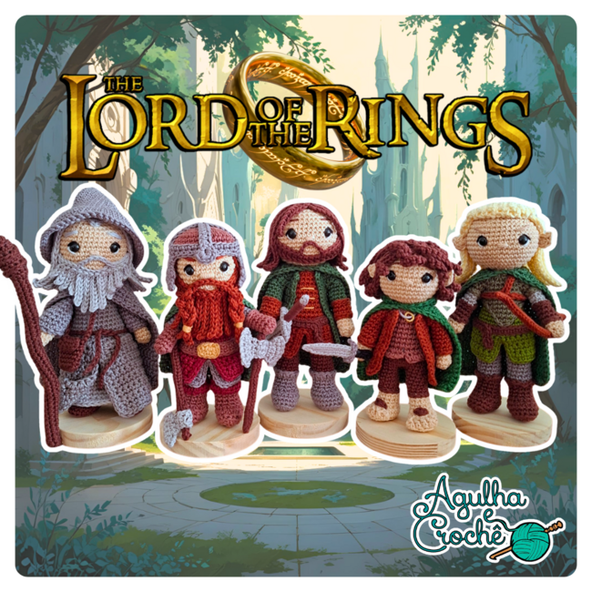 This bundle contains the patterns to crochet Gandalf, Frodo, Aragorn, Gimli and Legolas From Lord of the Rings series.