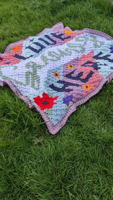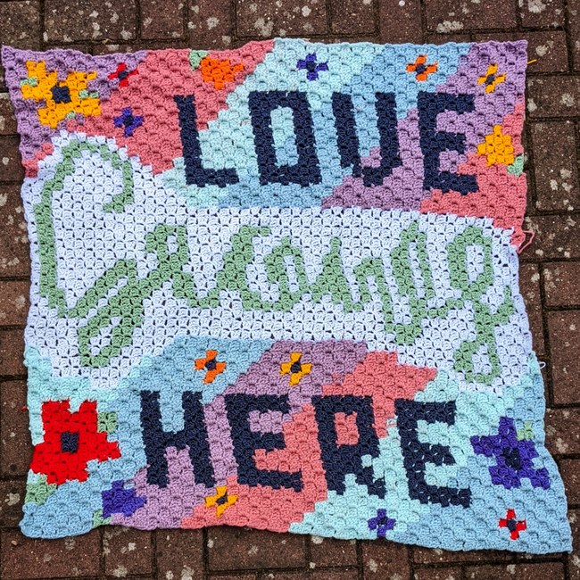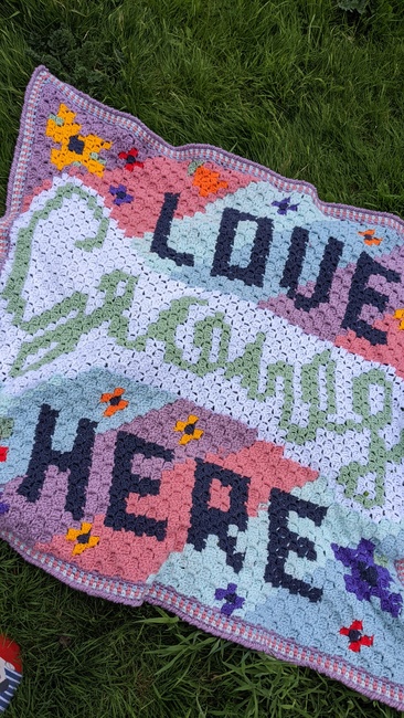 Thoughts From A Doe designed the Love Grows Here Corner to Corner blanket pattern. Find more of their patterns on their Ribblr shop page.