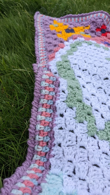 The love Grows Here Blanket is a corner to corner blanket bordered by moss stitch and a final row of crab stitch too!