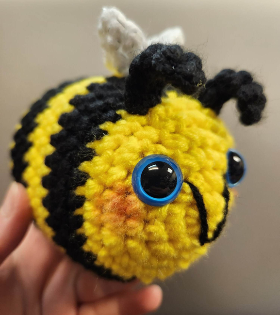 FromtheMindofShawna designed the Low Sew Amigurumi Bee pattern. Find more of their patterns on their Ribblr shop page.