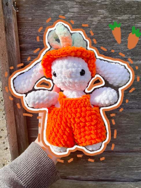 Low Sew bunny in a carrot costume is an Intermediate Crochet pattern designed by Elodie Creates for making an Amigurumi. This is a bunny in a arrot costume! It comes with a low sew bunny, no sew overalls, and a low sew carrot hat!This is a custom pattern for Cosmo4!If u find any mistakes PLEASE let me know!!