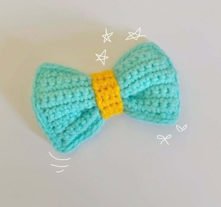 This cute little bow is my first pattern! You can leave it as is, or you can see it an appliqué on a sweater or bag! I like to tie it around a braid for a cute hair bow! Enjoy!