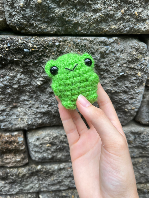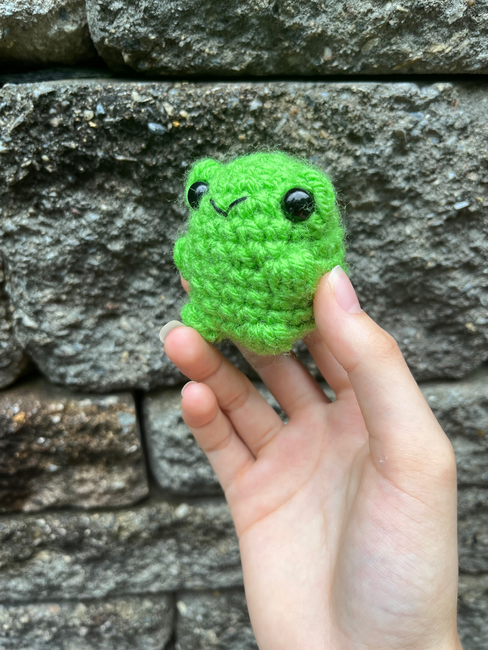 This is a pattern for a small frog! It is super quick and easy to make, and is so cute! Thank you for using my pattern! You may sell the finished product, but please give me credit as the designer,