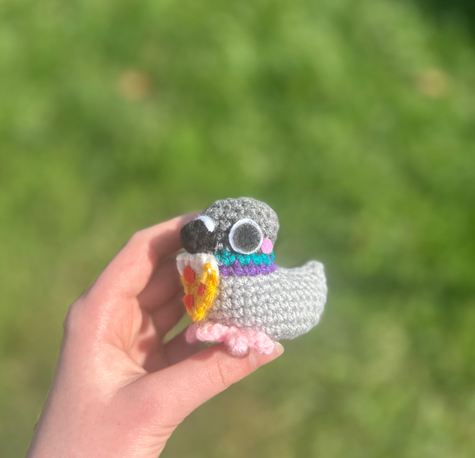 Crocheted By_MarblesTheSilly designed the Low-Sew Waffles the Pigeon pattern. Find more of their patterns on their Ribblr shop page.