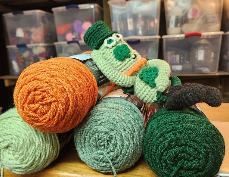 To make Lucky Bugable you will need: Red Heart Frosty Green, Red Heart Hunter Green, Red Heart Black, Red Heart Soft White (eyes), Red Heart Carrot, Cardboard or hard plastic for a sturdy base, yarn needle, scissors, stuffing. Safety eyes if wanted.. Tools required: C, 2.75 mm.