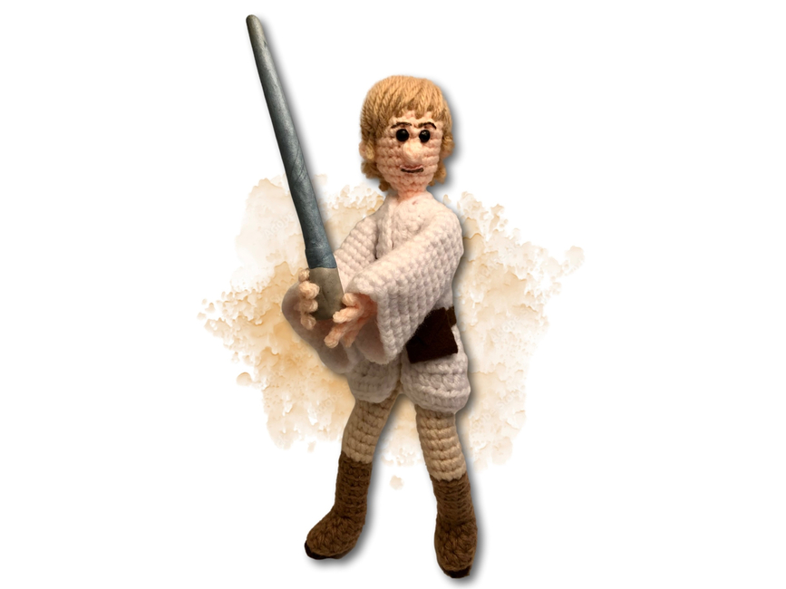 Skills: crochet, basic hand sewing, polymer clay moulding (for the lightsabre)