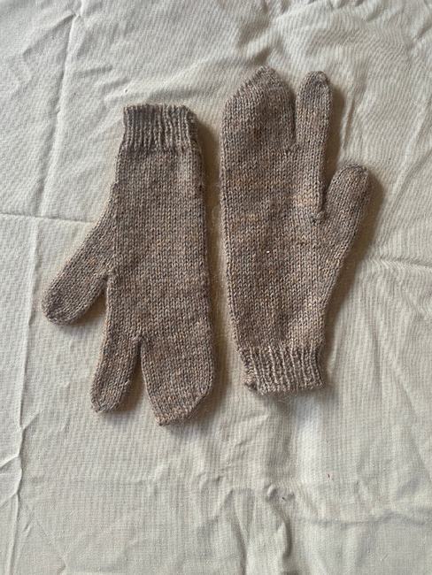 The mittens are knitted bottom up in the round, from wrist to fingertips. Firstly you will knit the ribbing, then the hand and thumb gusset. Stitches for the thumb and index finger are put on stitch holders, while the rest of the mitten is finished. You then pick up stitches for the fingers and finish these. Weave in your ends and block as desired. The right and left mittens are identical, so you just repeat the pattern as many times, as you need :)