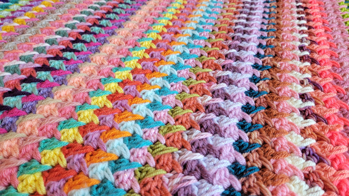 This pattern shows you how to create a crochet textured striped blanket, easily made to the size you want! Also can be made in any color(s) you want. All of my patterns can be made with different sized yarn, you would just need to match your yarn size and hook size to adjust. If you have any questions about this pattern, please contact me!