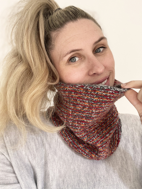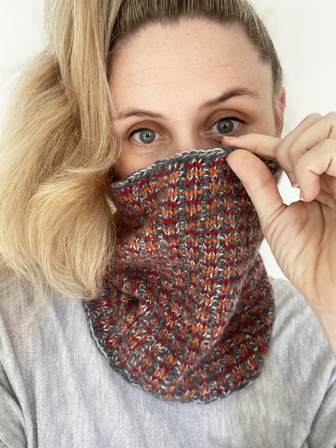 Knit One, Crochet Too designed the LYNG COWL pattern. Find more of their patterns on their Ribblr shop page.