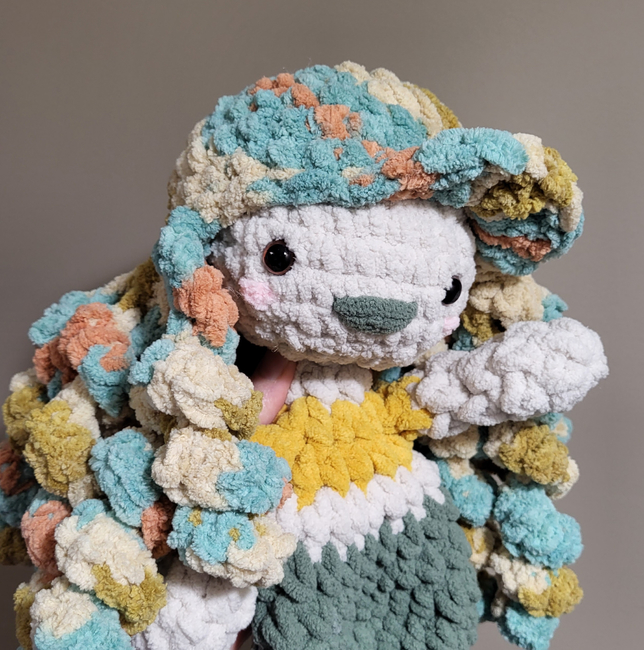 The finished snuggler will measure approx. 16"