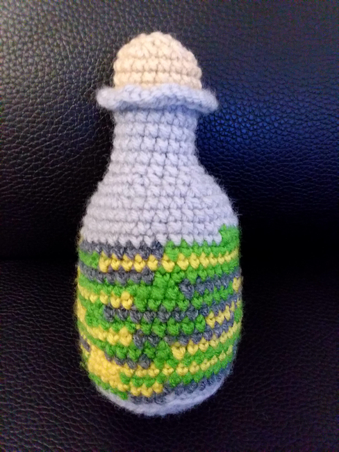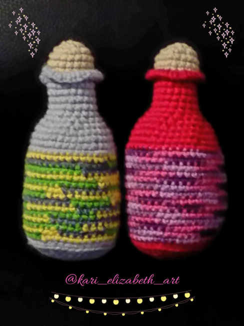 In Summer 2023, I took a Magic-Witchcraft-Religion class, and I was inspired to create a no sew pattern, a magic witch bottle. Witch bottles are used for protections from evil spirits. I highly recommend using worsted weight yarn for your own witch bottle, but you are welcome to use any other yarn you want.