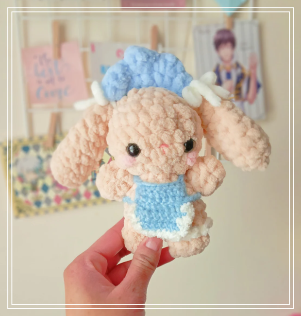 An adorable little bunny inspired by Japanese maid fashion. She is dressed in an adorable outfit, with cute accessories like bows and lace detail.