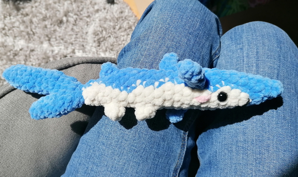 Hi, what a surprise! I made another shark pattern, because my brother can't get enough of them. I hobe you enjoy crocheting your own mako/blue shark. DId you know that they are the fastest sharks and can jump 9 m high?? All in all i think that they are adorable. THe pattern is for intermediate crocheters, because of the color change. Besides that it's really easy and doesn't use a lot of materail. Let's go...