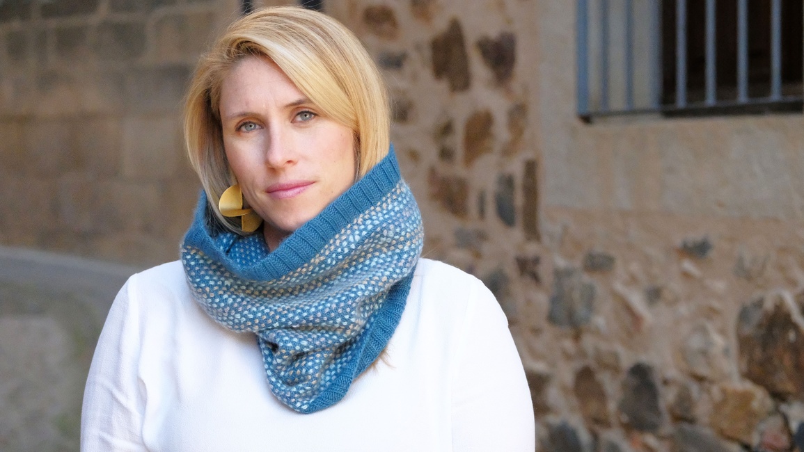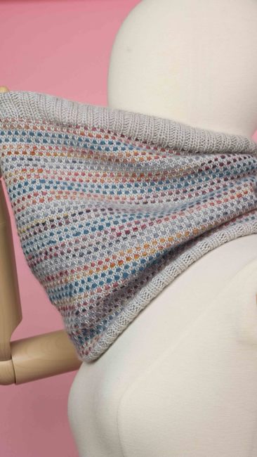 This cowl is worked in the round while working stripes of Swedish weave sts.