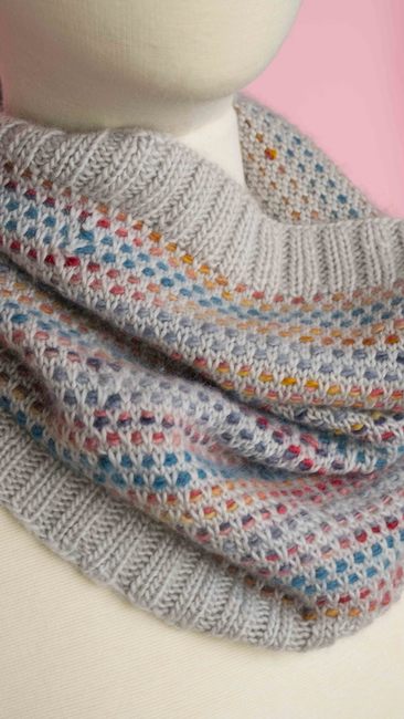 Marques Cowl 2458 is an Intermediate Knitting pattern designed by Knit One, Crochet Too for making an Accessories. DESIGNED BY: Jesse Molzan SPECIAL TECHNIQUES:This cowl is worked in the round while working stripes of Swedish weave sts.
