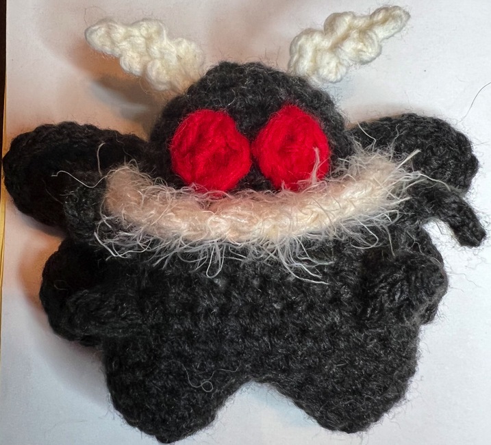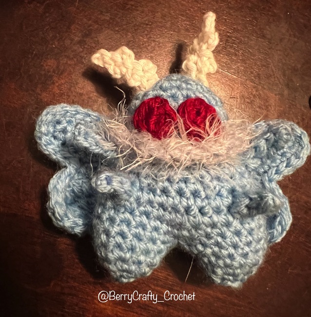 Hello! This Mars, my chaotic good Mothman. I hope you enjoy making them and please tag me in all your creations @BerryCrafty_Crochet. I've even added a section if you'd like to make them into a Fly :)