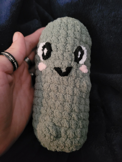 I'd been in a pickle searching for the perfect pickle pattern so I figured I'd make my own! I also went a little pickle crazy and made 3 different sizes so this one is the MEDIUM one of my pickle patterns available. And I only put intermediate for the bobble stitch, but if you already know how to do that and are an amigurumi pro, this pattern will be more beginner level. While many pickle patterns are made in similar ways, please don't try to pass of my own work and pattern as your own. But absolutely feel free to sell makes from this pattern! Happy crafting and don't forget to message me if you have any questions, comments or concerns! :)