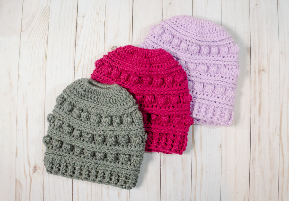 The Messy Bun(ny) Beanie pattern is free on Ribblr.
