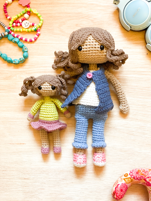 This is a bundle that includes both Mia the doll and Rose the small doll. Both have moveable heads with in depth description to help you do that. Mia has clothes that you can change and Rose has clothes that are attached to her already. Very detailed descriptions for how to join the hair, many photos and more. (You can find more description on these dolls if you go to my shop and read each one separately.So if you want to create your very one versions of these doll then start hooking.