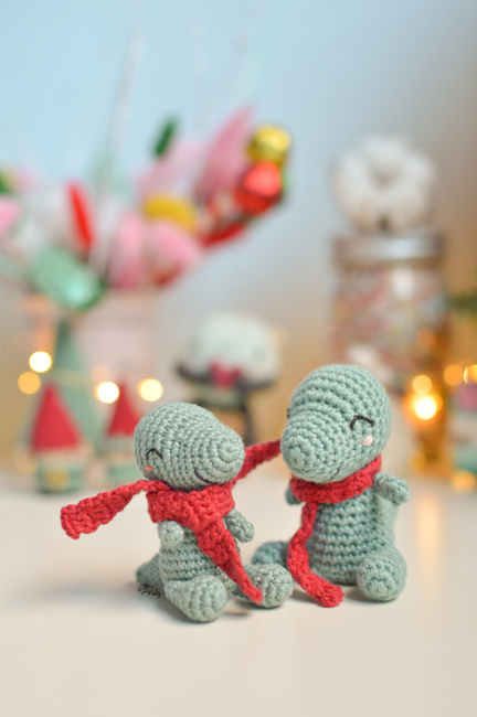 Pattern or knitting guide to knit your own mini amigurumi dinosaur as adorable as you want.