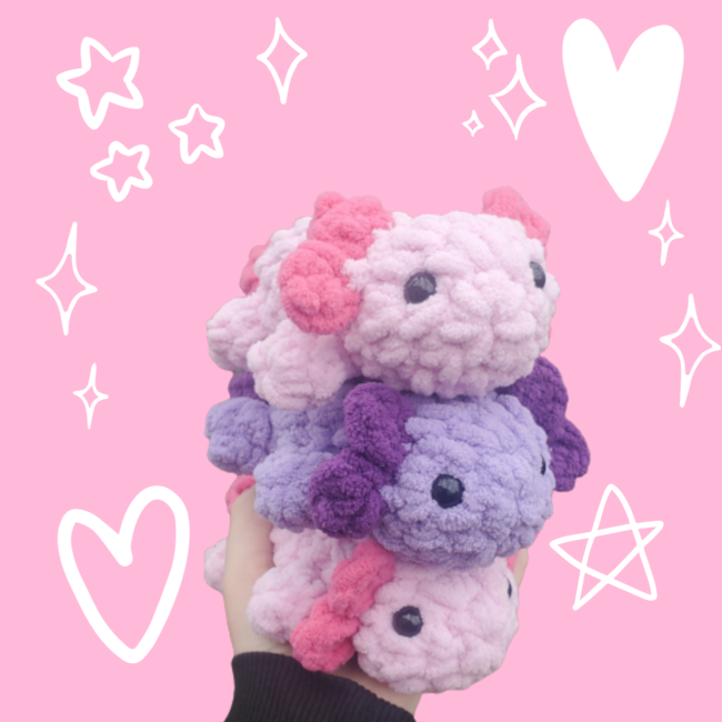 bepsimeow designed the mini axolotl pattern. Find more of their patterns on their Ribblr shop page.
