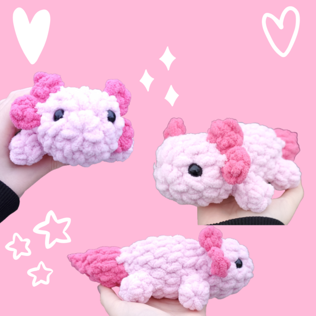 mini axolotl is a Beginner Crochet pattern designed by bepsimeow for making an Amigurumi. A cute laying down axolotl! Suitable for beginners who know how to increase and decrease while working in the round.