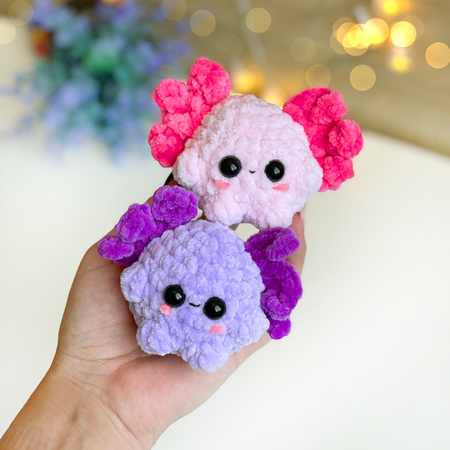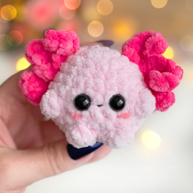 Create an adorable no-sew axolotl plush with this easy amigurumi crochet pattern