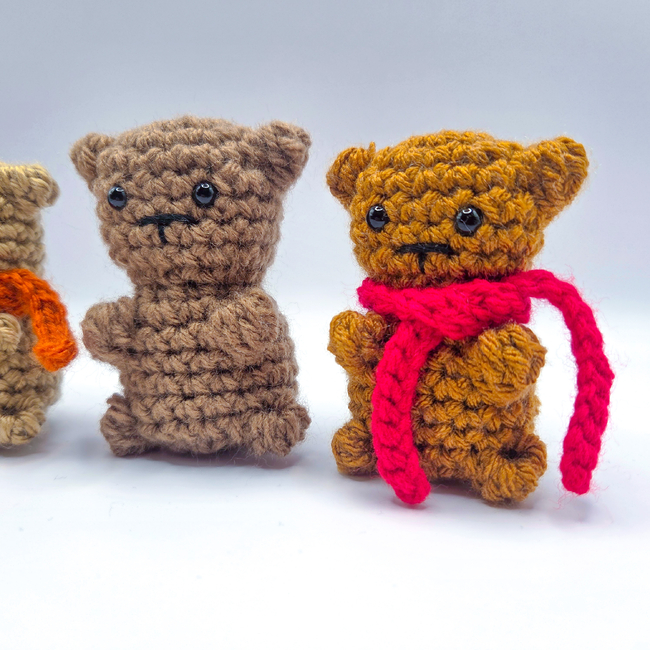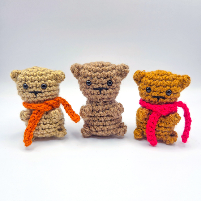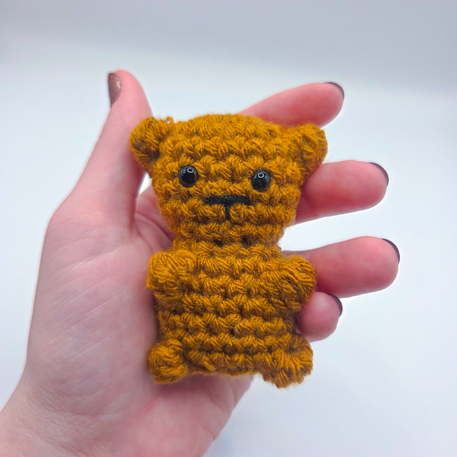 This no sew pattern is great for amigurumi beginners and quick for crochet markets! This crochet Mini Bear can also be adapted into an adorable bag charm. The bear is crocheted in continuous rounds. The only needle work is the mouth and weaving in the tails.