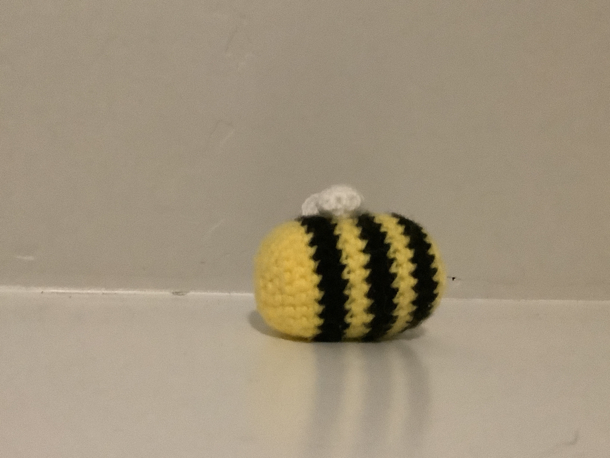 An adorable mini bee! Perfect for buzzing around your new spring and summer crocheted flowers.