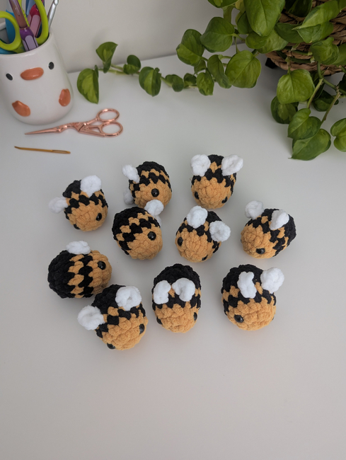This is a crochet pattern for miniature bees. You need chenille yarn in white, yellow, and black for this pattern, but you could of course make them in any color you'd like!
