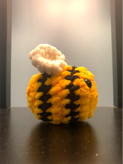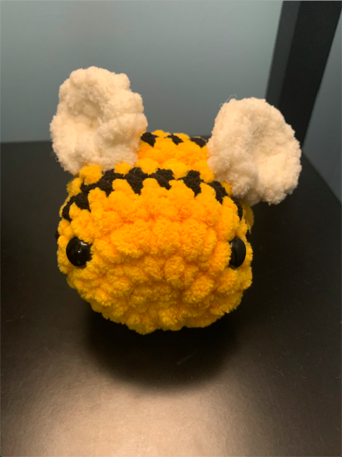 This is a really cute little bee that is small enough to fit in your hand. I used blanket yarn and 12mm eyes for this bee.