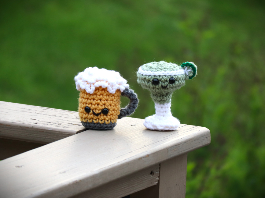 Make your own adorable and soft Amigurumi crochet beer mug and margarita plushie!