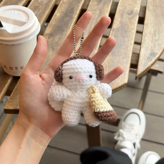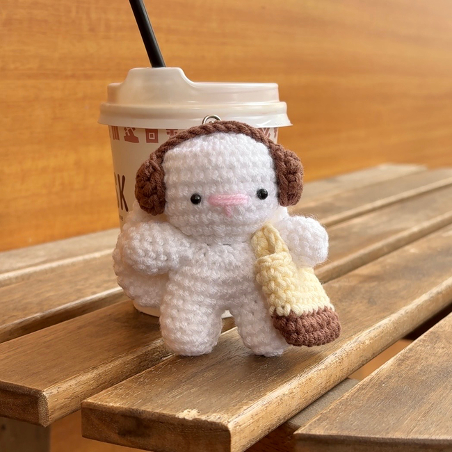 In this pattern, you'll make a cute mini bunny charm with little headphones and a tiny bag.