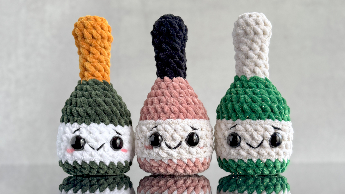 Crochet Mini Champagne Bottle Plush Amigurumi Pattern