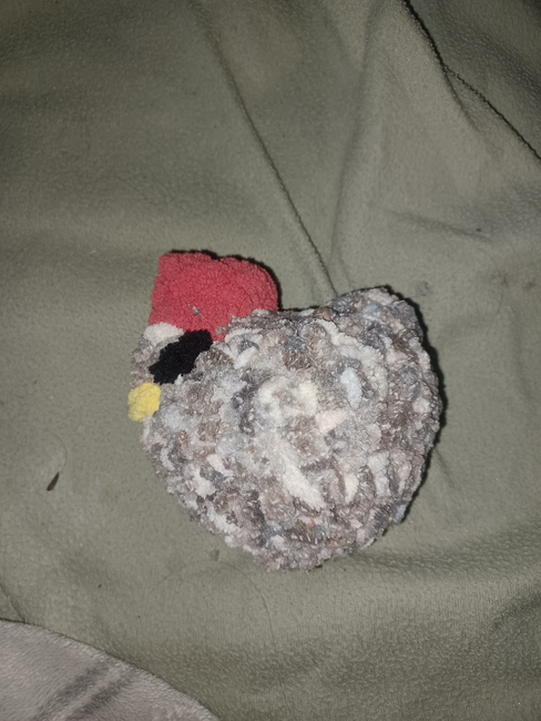 To make Mini Chicken you will need: Really red bernat, Driftwood Dreams, Black, Yellow. Tools required: Size 6 mm, Yarn needle.