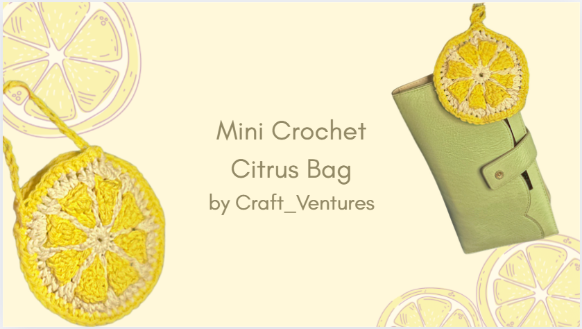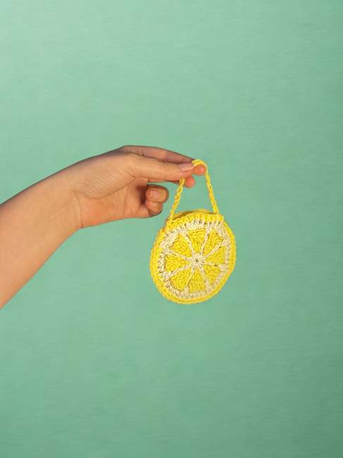 CraftVentures designed the Mini Citrus Bag pattern. Find more of their patterns on their Ribblr shop page.
