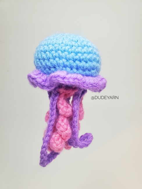 Hi! I totally love jellyfish and I really wanted to share this awesome pattern with you. You can make this pattern out of any type of yarn as long as you use the appropriate hook size. I really love the look of this Mini Jellydude in blanket yarn. The yarn brand and weight I used while writing this pattern was Big Twist Value Medium (4). This pattern is worked in rounds.