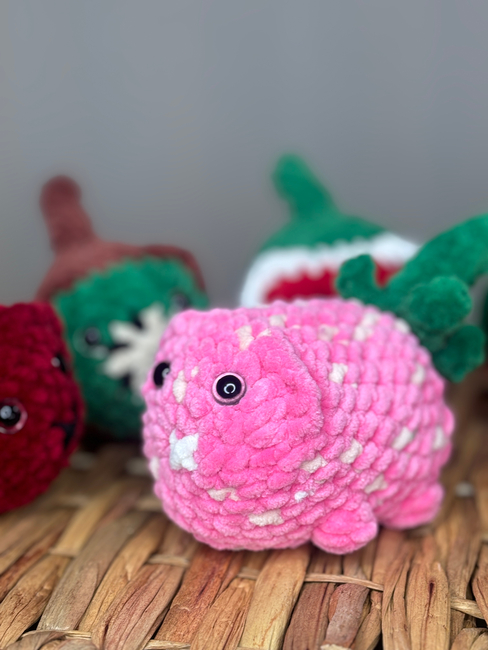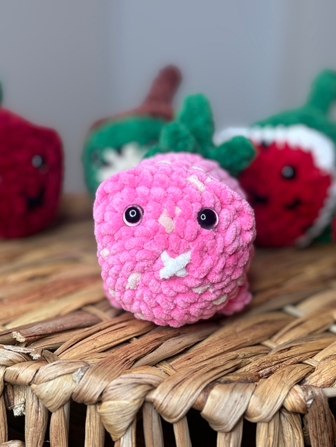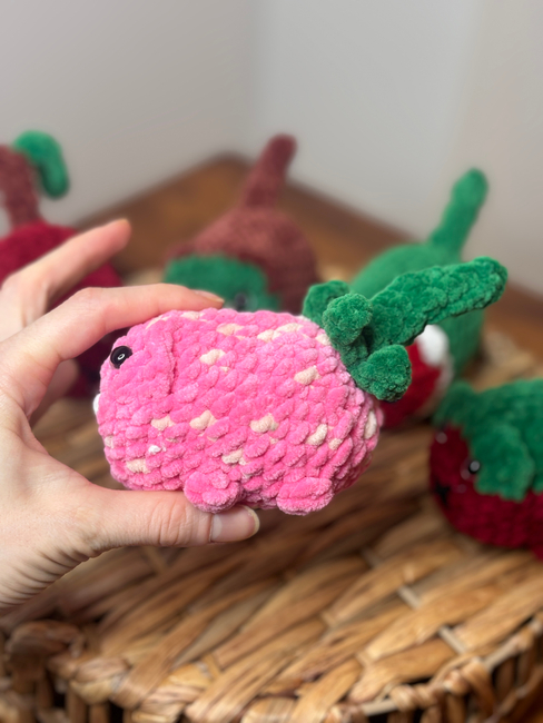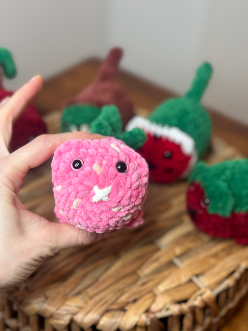 Crochet your own No Sew Strawberry Loaf Cat a cute and beginner-friendly amigurumi that's fast to make! Using super bulky (6) yarn, a 4 mm hook, and safety eyes, this plush is worked entirely in one piece with no sewing. Includes step-by-step pictures