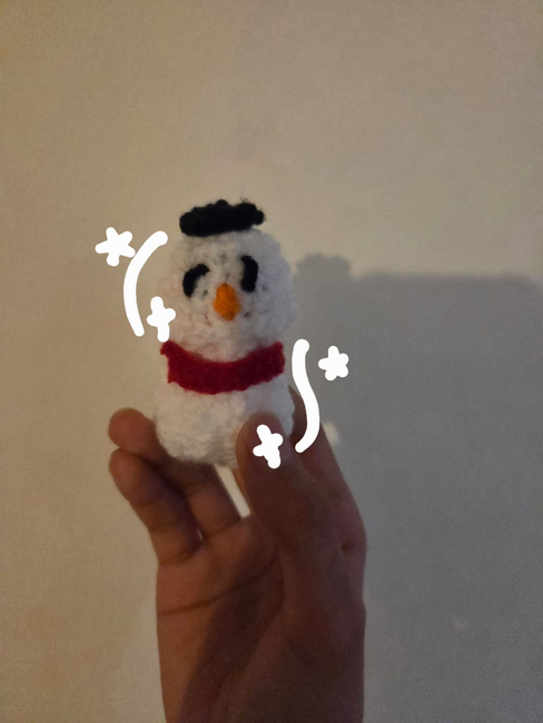 This pattern provides clear, approachable instructions for creating a compact snowman with a rounded body, simple facial details, and optional accessories like a scarf or tiny hat to add personality.