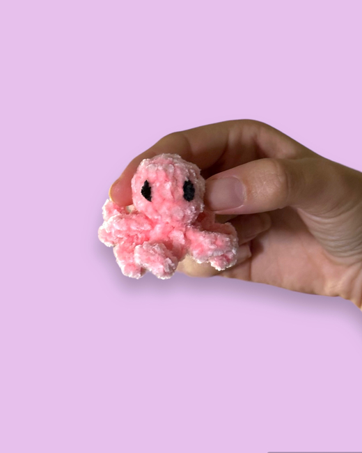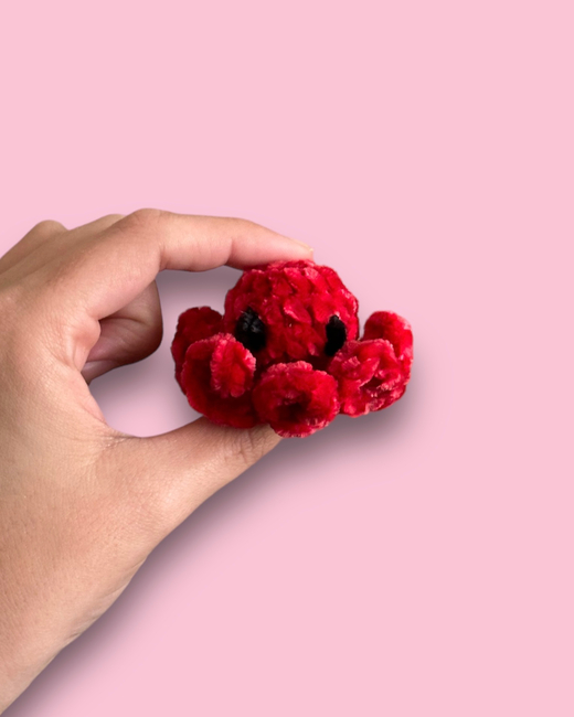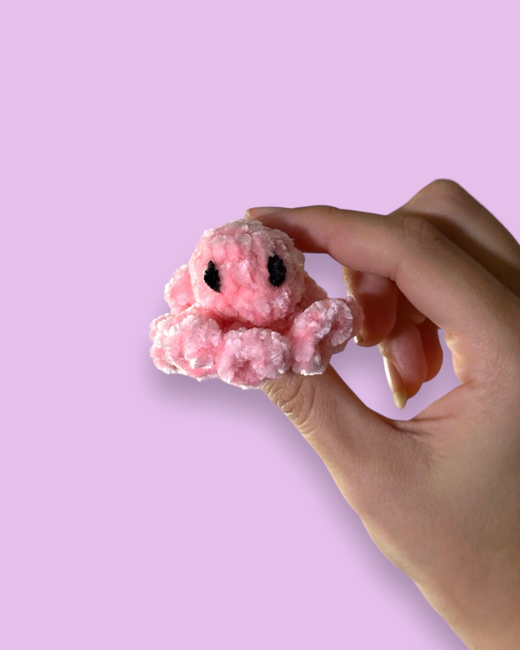 Perfect pattern for markets since this plushie works up very quickly! This one's made with baby Bernat yarn so it is very small. However you can use different yarn weights or hooks to make them in many different sizes!