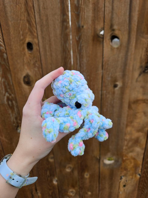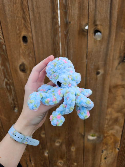 CraftyCellistCrochets designed the Mini Octopus (no sew) pattern. Find more of their patterns on their Ribblr shop page.
