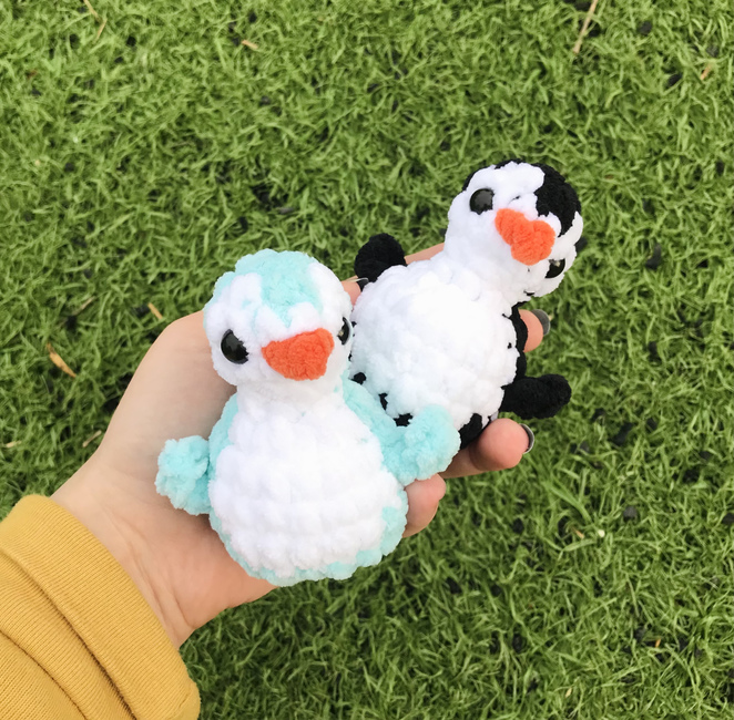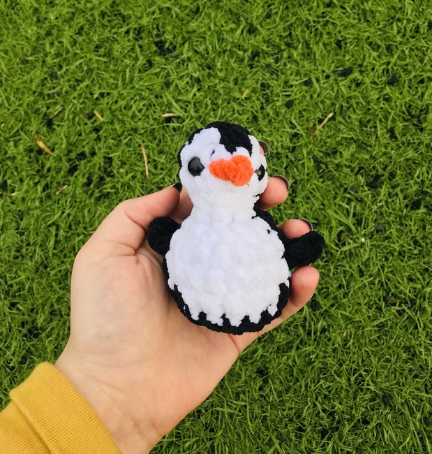 This mini penguin is the perfect winter addition to add to your collection or shop. Even made with plush yarn, it fits perfectly in the palm of your hand!